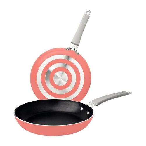 Aprimore a sua experiencia na cozinha com o conjunto de frigideiras Tramontina em aluminio, apresentando revestimento interno em Starflon Premium e exterior siliconado laranja, composto por 2 pecas!