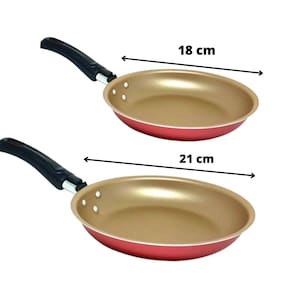 Medidas : 1- 18cm frigideira 3cm altura 15cm cabo 33cm total 1-21 cm frigideira 3,5 cm altura 15cm cabo 35cm total Marca: Não Informado