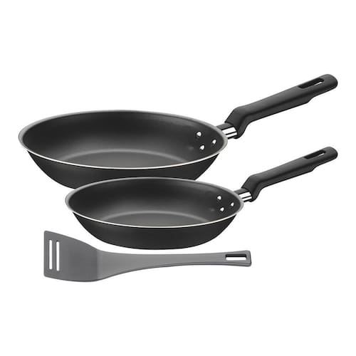 Jogo de Frigideiras Tramontina Loreto em Alumínio com Revestimento Interno e Externo Antiaderente Starflon T1 com Cabos Baquelite Grafite 3 Peças O Jogo de Frigideiras Tramontina Loreto em Alumínio com Revestimento Interno e Externo Antiaderente Starflon T1 com Cabos Baquelite Grafite 3 Peças é a escolha certa para sua cozinha! As duas frigideiras são produzidas em alumínio, que proporciona um cozimento rápido e uniforme dos alimentos, devido sua espessura. Seu revestimento interno e externo antiaderente Starflon T1 possui alto poder de antiaderência e ainda garante maior resistência à abrasão, prolongando sua vida útil em 5.000 ciclos. Para dar mais segurança no manuseio, os cabos são produzidos em baquelite antitérmico, que não esquenta e evita queimaduras. Além disso, acompanha uma espátula para lhe auxiliar nas mais diversas receitas. É um jogo essencial em sua cozinha, pois é resistente, durável e prático, podendo ir à máquina de lavar louças todos os dias. Garanta já o seu e tenha momentos inesquecíveis na cozinha!