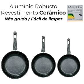 Características: Marca: Casambiente Referência: AL133/AL134/AL135 Modelo: Zebra Material da Frigideira: Alumínio Material do Cabo: Baquelite Soft-Touch Revestimento Interno: Cerâmico Espessura: 2,5mm Cor: Preto Quantidade: 3 peças