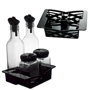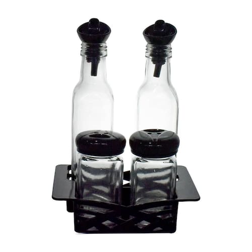 O design moderno e minimalista das peças destaca-se pela garrafa em vidro transparente, que permite visualizar o conteúdo com facilidade, e pela tampa preta com bico dosador, que garante mais controle e precisão ao servir óleos, azeites ou molhos.