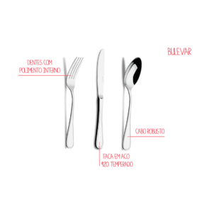 Para uma mesa elegante e clássica, a linha Bulevar possui um design tradicional e cabo em formato de gota com recortes. O garfo de sobremesa é perfeito para usar quando for servir um docinho depois da refeição, mas também cai bem na mesa do lanche da tarde. A estrutura e o cabo em aço inox polido tornam a peça altamente durável e resistente, não correndo risco de oxidar e podendo inclusive ir á máquina de lavar louça.