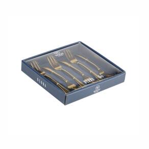 Jogo De Garfos Para Bolo Em Inox Berna Dourado Com 6 Peças Wolff - Características Gerais do Produto: • Dimensões: 14,4x2x1,6cm • Material Principal: Inox • Linha: Berna • Cor: Dourado • Informações Adicionais: Lave seus talheres usando esponja macia, sabão neutro ou detergente líquido; Não utilizar produtos abrasivos tais como saponáceos ou palhas de aço; Para garantir a durabilidade do produto secar bem após a lavagem; Não pode ir a lava-louças e ao micro-ondas