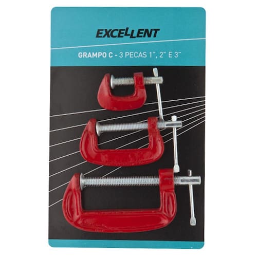 Jogo de grampo "c" com 3 peças 1",2",3" 3kw - eda Grampos de aperto, tipo "c", de qualidade profissional. Indicados para prender ou prensar objetos. - marca: eda - modelo: 3kw - contém 3 grampos tipo "c" - grampos resistentes - indicados para prender ou prensar objetos - contém grampos de: 3", 2" e 1" - peso bruto: 375g - garantia: 90 dias