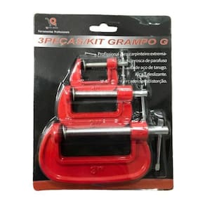 Jogo De Grampos Profissional Tipo G Com 3 Peças Jogo De Grampos Tipo C Com 3 Peças O corpo da braçadeira é feito de ferro dúctil, que é feito por fundição, e o corpo de fixação exclusivo é projetado para garantir que não seja fácil de deformar. Projetado para fornecer maior torque e força para garantir um forte efeito de fixação. QUALICAÇÕES: - Utilizado para fixação de madeiras e peças em diversas atividades. - Indicado para indústrias, marcenarias, serralherias, marmorarias, entre outros. - Corpo fundido de grampo e coberto de verniz de cor. - Parafuso zincado de grampo com prendedor especial assegura fixação segura de peças. ESPECIFICAÇÕES: - 1 25mm - 2 50mm - 3 75mm - Imagem Meramente Ilustrativa Marca: Quickstore