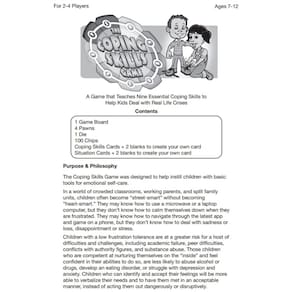 O jogo de habilidades de enfrentamento oferece às crianças ferramentas para autocuidado emocional. As crianças aprenderão a lidar com sentimentos, ajustar atitudes, descobrir escolhas, aceitar imperfeições e muito mais. O jogo apresenta situações da vida real e torna divertido lidar com elas. Os participantes aprendem a identificar e aceitar seus sentimentos, verbalizar suas necessidades e a atendê-los de maneira aceitável, em vez de representá-los de forma perigosa ou perturbadora. Eles sabem como usar um micro-ondas ou um laptop, mas não sabem como se acalmar quando estão frustrados. Eles podem saber como navegar pelo aplicativo e jogo mais recentes em um telefone, mas não sabem como lidar com tristeza ou perda, decepção ou desconforto. O Coping Skills Games foi projetado para ajudar a incutir as crianças com ferramentas básicas para o autocuidado emocional. Essas crianças sabem como usar um micro-ondas, computador, videogames se tornam "inteligentes nas ruas", não sabem como se acalmar - Os participantes gostam de aprender a lidar com os desafios diários - Este jogo ensina 9 diferentes estratégias de enfrentamento - As crianças aprenderão a lidar com sentimentos, ajustar atitudes, descobrir escolhas, aceitar imperfeições e muito mais - Para 2 a 4 jogadores - Idades: 7-12