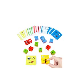 - Cada participante deverá pegar uma carta ao mesmo tempo e ao virar, deve montar a carinha do emojis no cubo correspondente ao da carta, ao terminar deve assoprar o apito.