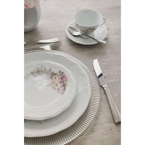 A delicadeza das rosas e a sutileza dos tons pásteis é o que define uma das decorações mais tradicionais da marca. O serviço de jantar 42 pçs é composto por 6 pratos de sobremesa com 19 cm, 6 pratos fundos com 23 cm, 6 pratos rasos com 26 cm, 6 pires para xícara de chá, 6 xícaras de chá de 200 ml, 6 pires para xícara de café e 6 xícaras de café 80 ml
