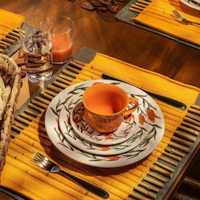 Acompanha o produto: - 6 Pratos Rasos6 Pratos Fundos6 Pratos para Sobremesa6 Xícaras para Chá6 Pires Garantia: - Contra Defeito de Fabricação (90 dias)