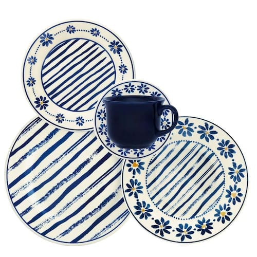 Jogo De Jantar Em Cerâmica Donna Com 30 Peças Oxford Margaridas Jogo De Jantar Em Cerâmica Donna Com 30 Peças Oxford Margaridas - Características Gerais do Produto: - Dimensões: Prato Raso 26x3,5cm | Prato Fundo 21,5x4cm | Prato Sobremesa 18x2cm | Xícara 9x8cm | Pires 14x2cm - Capacidade: 200ml - Material Principal: Cerâmica - Linha: Donna - Informações Adicionais: Resistente a micro-ondas e lava-louças