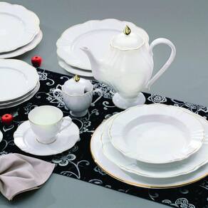 • 6 Pratos Rasos 6 Pratos Fundos 6 Pratos para Sobremesa 6 Xícaras para Chá 6 Pires