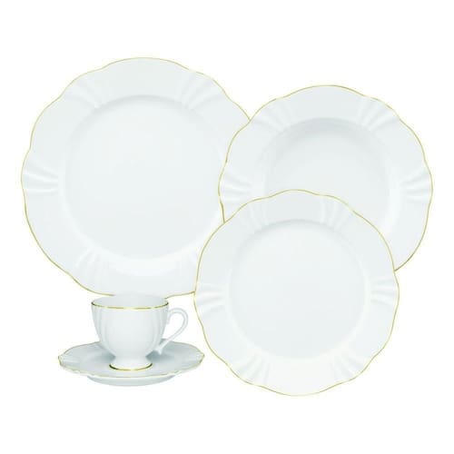 - 6 Pratos Rasos6 Pratos Fundos6 Pratos para Sobremesa6 Xícaras para Chá6 Pires