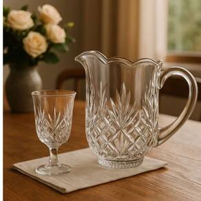Jogo de Jarra e Taças para Água Cristal Ecológico Lapidadas 7pç L`Hermitage