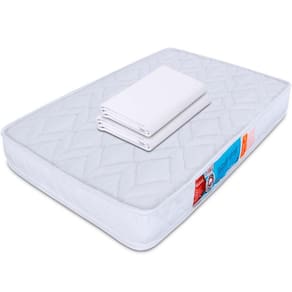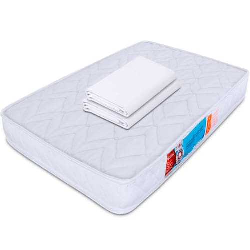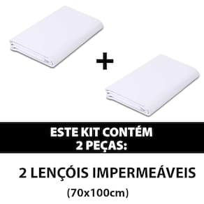 Este kit contêm: 02 Lençol Com Elástico Branco Impermeável Para Chiqueirinho (70cm X 100cm)