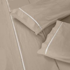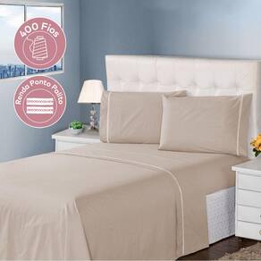 Jogo de Lençol 4 Peças Ponto Palito Queen 400 Fios 1,98 X 1,58 Metros Branco Casa Dona - Bege Claro
