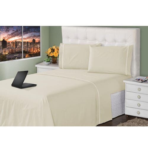 Motivos para Comprar- Jogo de Lençol Parcial ou Completo para sua Cama; - Deixa seu quarto completo; - Perfeito para presentear, pois se trata de um jogo de cama completo; - O material se mantém bonito por muito tempo, não amassa, seca mais rápido; - A qualidade e sofisticação que seu quarto merece; - Possui toque macio, tornando-o mais confortável. CaracterísticasItens Inclusos: 01 Sobre Lençol, 01 Lençol Ajustável 02 FronhasLargura e comprimento: 01 Sobre Lençol 2,60m x 2,40m01 Lençol Ajustável 1,98m x 1,58m x 40cm (Com Elástico)02 Fronhas 70cm x 50cmMarca: Casa Dona Modelo: Ponto PalitoTecido: Percal de Poliéster Quant. Fios: 400 FIOS Composição: 100% PoliésterCuidados na Lavagem- Não utilizar alvejante; - Ao lavar na máquina, usar programa ?delicado?; - Secar à sombra; - Passar com ferro a baixa temperatura; - Não lavar a seco.