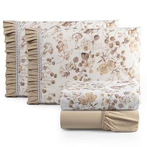 Jogo De Lençol Afrodite Queen 4 Pçs Algodão 180 Fios Estampa Floral - Cáqui - Única