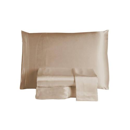 Jogo De Lençol Arya Queen 4 Peças Cetim Charmousse Brilhante Macio - Nude - Única