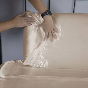 Jogo De Lençol Arya Queen 4 Peças Cetim Charmousse Brilhante Macio - Nude