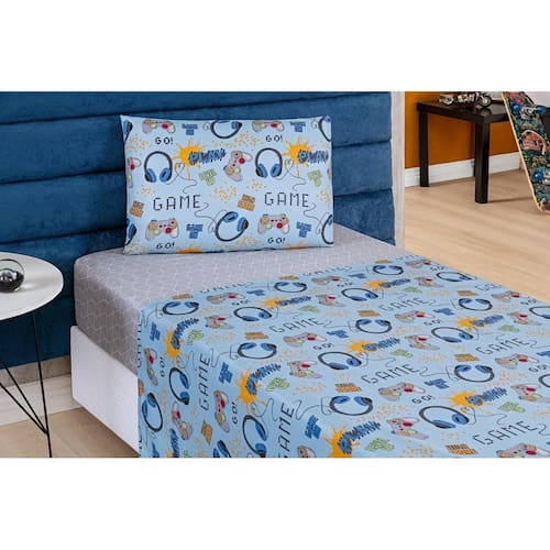 Jogo De Lençol Bouti Kids Solteiro 3 Peças Estampado Game Imagine transformar o quarto do seu filho ou filha em um espaço encantador e aconchegante com o Jogo de Cama Bouti Kids da Nathalia Enxovais. Este conjunto não só embeleza o ambiente, mas também oferece o conforto que seu pequeno merece. O jogo de Cama Bouti Kids é perfeito para criar um quarto lindo e moderno. Feito com um tecido leve e prático, ele é ideal para o uso diário, proporcionando um toque divertido e acolhedor ao ambiente. Composto por três peças essenciais, este jogo inclui um lençol de baixo com elástico 0,90m x 1,90m x 0,30cm , um lençol de cima com 2,50nm x 1,50m e uma fronha 70cm x 50cm , garantindo um ajuste perfeito e noites de sono tranquilas. Além de sua funcionalidade, o design do Jogo de Cama Bouti Kids traz um charme especial ao quarto, tornando-o um lugar onde seu filho ou filha vai adorar passar o tempo. Cada detalhe foi pensado para oferecer o máximo de conforto e bem-estar, transformando a hora de dormir em um momento ainda mais especial. Dê ao seu filho ou filha o presente de um quarto bonito e acolhedor com o Jogo de Cama Bouti Kids. Eles vão adorar a nova decoração e você vai se sentir feliz sabendo que proporcionou um ambiente confortável e cheio de carinho.