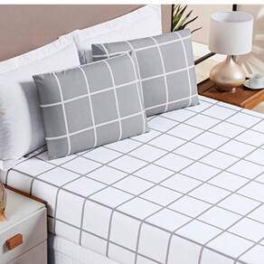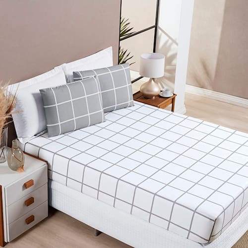 1 Lençol com Elástico: Projetado para colchões de casal, o elástico em toda a volta garante um ajuste perfeito e seguro, evitando que o lençol saia do lugar durante a noite.