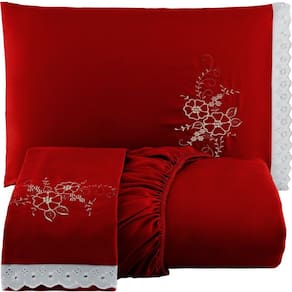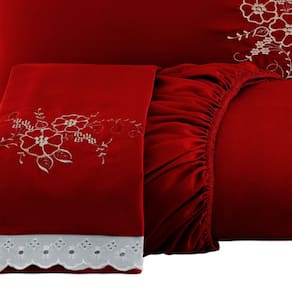 Jogo de Lençol Cama Queen 3 Peças com Elástico Bordado - Vermelho