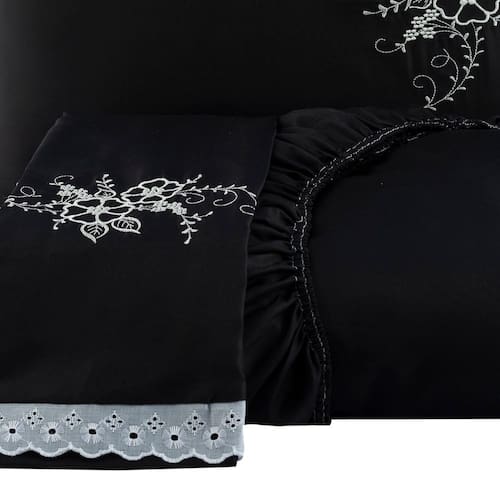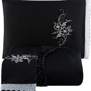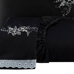 Jogo de Lençol Cama Solteiro 2 Peças com Elástico Bordado - Preto