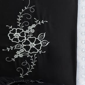 Design delicado e romântico: A estampa floral bordada em tons suaves, combinada com a renda delicada, confere um toque de romantismo e elegância ao seu quarto.