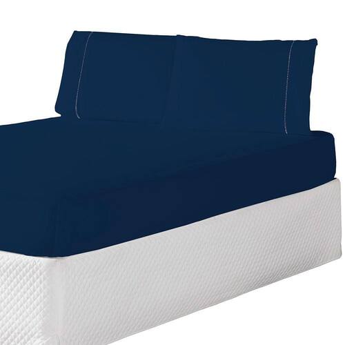 Jogo De Lençol Casal King 3 Peças Laura 100% Poliéster 200 Fios Cor:azulmarinho - Única