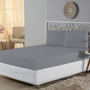 Jogo De Lençol Casal Padrão Malha 100% Algodão 3 Peças - Cinza