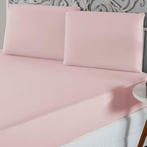 Jogo De Lençol Casal Padrão Malha 100% Algodão 3 Peças Cor Rosa