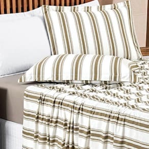 Jogo De Lençol Casal Padrão Marim Malha 100% Algodão Estampado 4 Peças - Caqui