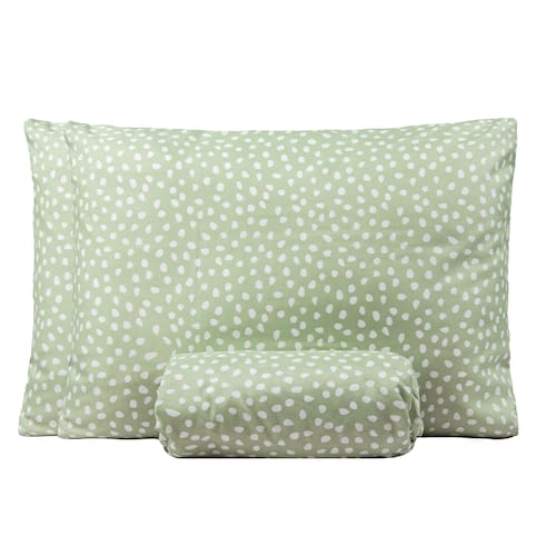 O conjunto também inclui duas fronhas com estampa, cada uma medindo 0,5 metros de largura por 0,7 metros de comprimento.