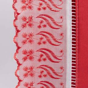 Além disso, o lençol apresenta um barrado de lese que acrescenta um toque de sofisticação e charme à sua cama. O barrado de lese, com seus delicados desenhos e detalhes rendados, eleva o design do lençol, transformando-o em uma peça única que reflete o bom gosto e a atenção aos detalhes.