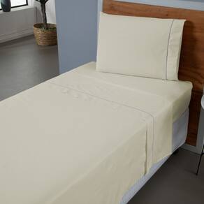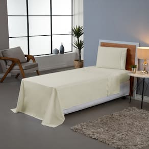 INFORMAÇÕES ESPECÍFICAS: - Detalhe ponto palito na fronha e ótimo tamanho de transpasse, evitando que fique saindo do travesseiro; - Jogo de lençol completo, acompanha lençol de cima (virol), podendo usar para se cobrir; - Disponível em 6 opções de cores; - Elástico em volta de todo o lençol de baixo; - Ideal para compor a decoração do quarto, podendo facilmente combinar.