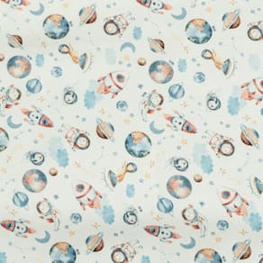 Suedine 100% algodão. Cor: Off White / Estampado Azul Itens Inclusos: 1 Lençol com elástico 1 Fronha 1 Sobre lençol