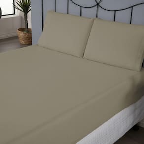 Jogo De Lençol Dia A Dia Liso 3 Peças Casal 80% Algodão / 20% Poliéster Percal 140 Fios Cor:cáqui