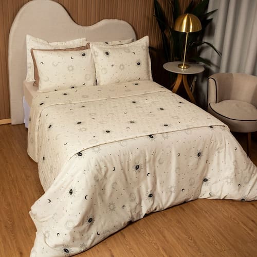 Obrigado por visitar nossa loja, temos os melhores produtos de cama, mesa e banho para sua casa com a melhor qualidade e variedade em diversos modelos, todos são rigorosamente revisados.Contém:01 Lençol de baixo liso com 0,88 x 1,88m com 30 cm de altura01 Fronha estampada com 70cm x 50cmComposição:Tecido 150 fios 67% Algodão 33% PoliésterIdeal para cama solteiro. Lençol com elástico para cama com 30cm de altura.As fotos são ilustrativas,as cores podem variar de acordo com cada monitor e não representam todas as peças que compõem na foto do produto. Muito obrigada pela sua visita e boas compras.