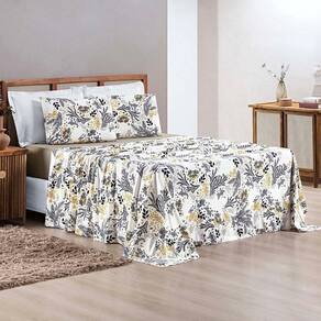 Jogo De Lençol Grace Queen 4 Peças Malha 100% Algodão Macio Estampado - Blossom Avelã