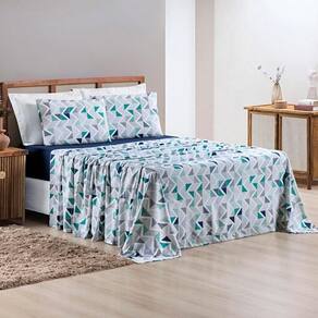 Jogo De Lençol Grace Solteiro 3 Peças Malha 100% Algodão Macio Estampado - Azul Geométrico