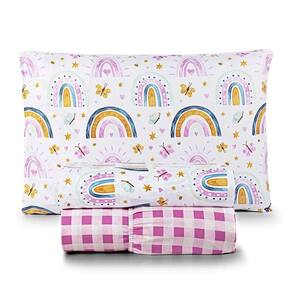 Jogo De Lençol Joy Kids Solteiro 3 Peças Micropercal 200 Fios Infantil - Rainbow - 100% Poliéster - Blush