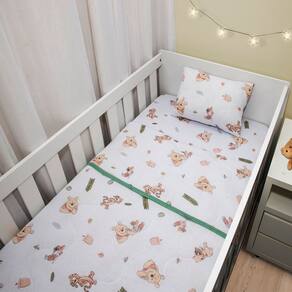 Conteúdo e Medidas: Jogo de Lençol Malha Berço Americano - Ursinho Pooh - 02 Peças 01 - Lençol Malha Baby Estampado c/ Elástico (70cm x 130cm x 12cm) 01 - Fronha Malha Estampada (30cm x 40cm)