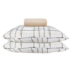 Jogo de Lençol KazzaVip Casal Malha 100% Algodão Lençol com Elástico Bruxelas 3 Peças Bege Caqui
