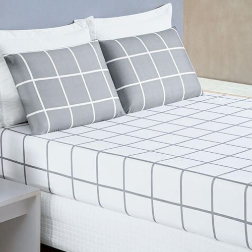 Jogo De Lençol King Austin Micropercal 200 Fios - 3 Peças Cor Xadrez Cinza