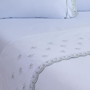 Conteúdo da embalagem:01 Lençol de cima com vira bordada 2,80m x 2,70m 01 Lençol de baixo com elástico em toda volta com 2,03m comp. X 1,93m larg. X 40cm altura 02 Fronhas bordadas 70cm x 50cm Composição: Tecido Percal 200 Fios 100% Algodão Marca: Não Informado