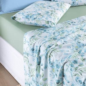 01 - Lençol de Cima Estampado 2,85m x 2,60m 01 - Lençol de Baixo Liso com Elástico para colchão de 2,03m x 1,93m x 40cm alt. 02 - Fronhas Estampadas 70cm x 50cm
