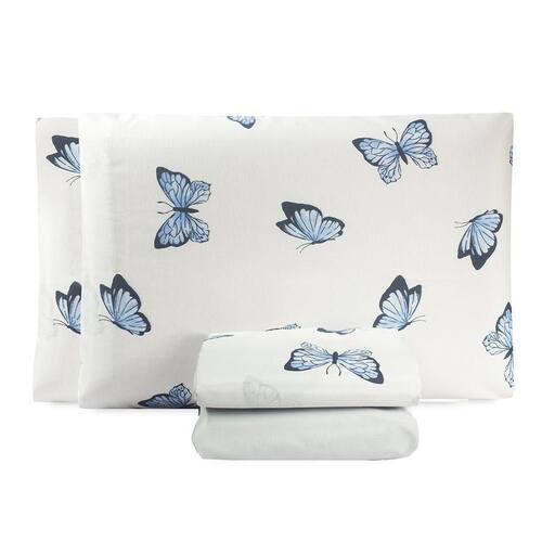 Jogo De Lençol King Essencialle 150 Fios 4 Peças - Borboletas Azuis - Azul