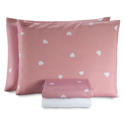 Jogo De Lençol King Essencialle 150 Fios 4 Peças Corações - Rosa