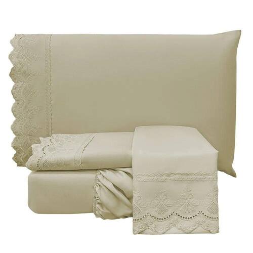 Jogo De Lençol King Lauren 300 Fios 4 Peças Fendi - Branco