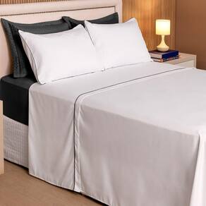 O kit conta com fronha e sobre lençol na cor branca. A fronha possui fechamento em envelope, o que facilita a retirada para lavagem. O jogo também acompanha um lençol com elástico nas 04 laterais.